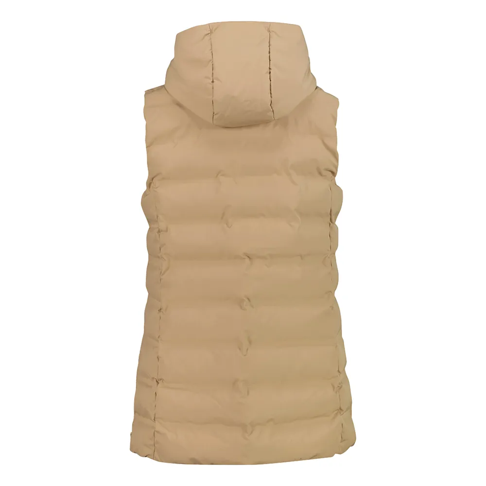 Colete longo feminino projetado para oferecer calor, proteção e conforto nos dias mais frios, graças à combinação da tecnologia Feel Warm Flock e da membrana Clima Protect.