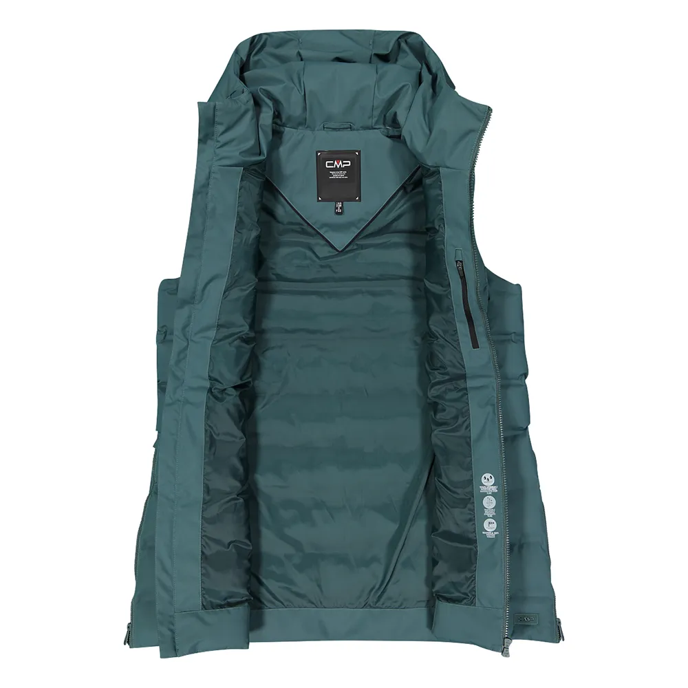 Colete longo feminino projetado para oferecer calor, proteção e conforto nos dias mais frios, graças à combinação da tecnologia Feel Warm Flock e da membrana Clima Protect.