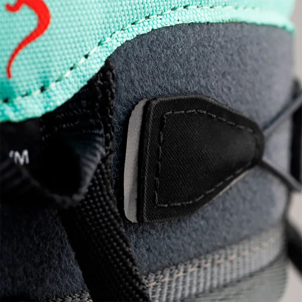 - Fit Webbing®: permite fixar as quatro fitas ajustáveis apenas com velcro, proporcionando um ajuste preciso e extremamente fácil. As fitas aderem perfeitamente ao arnês, evitando que suas pontas interfiram nas fivelas. Quando o velcro é removido, todas as fitas ficam livres e a mobilidade com a fivela é mais suave.