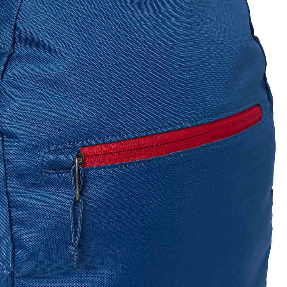Ela vem com um bolso frontal com zíper para acesso rápido aos seus itens essenciais, um bolso de malha para garrafa de água e uma capa para laptop sem acolchoamento.