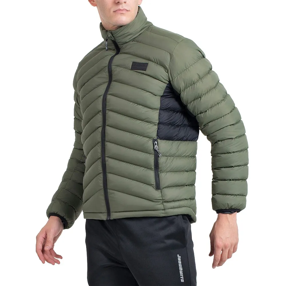 Feita para durabilidade e uma estética refinada, a camada externa é feita de um tecido de tafetá de nylon premium. Este material não é apenas resistente ao desgaste diário, mas também tem um acabamento suave ao toque que proporciona uma aparência limpa e elegante. O design sem capuz contribui para sua silhueta simplificada, tornando-a uma peça ideal para usar sob uma camada impermeável em climas adversos ou usar como uma jaqueta independente em dias frescos e secos.