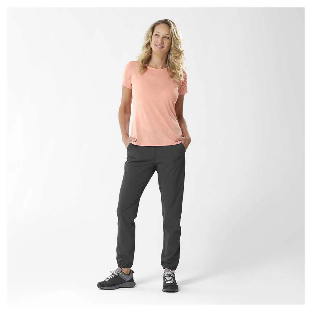 Calças de caminhada femininas que oferecem grande liberdade de movimentos e conforto incomparável graças a um tecido elástico em quatro direções, cós elástico e joelhos pré-moldados.