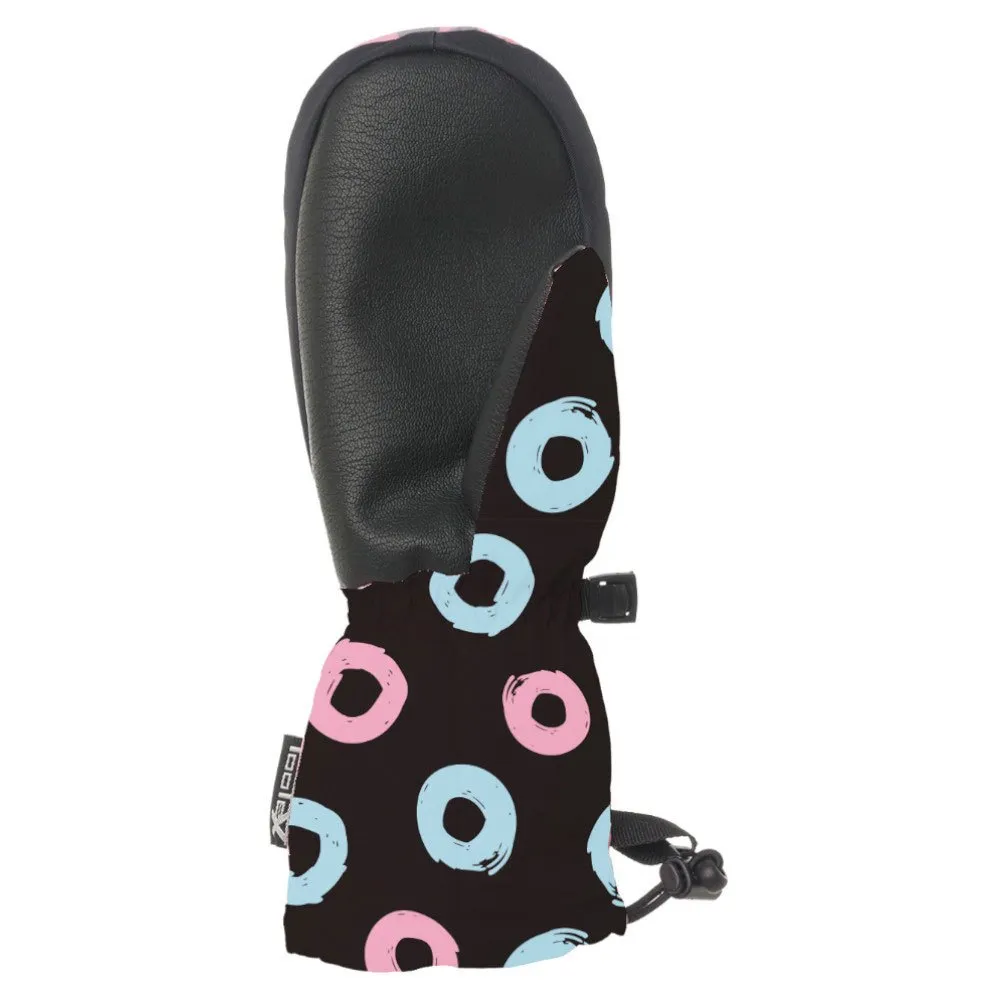 Recursos Práticos para a Montanha: Equipado com um remendo macio e suave no polegar para limpar um nariz frio e uma alça elástica de pulso para evitar que as mitenes caiam ou se percam no teleférico