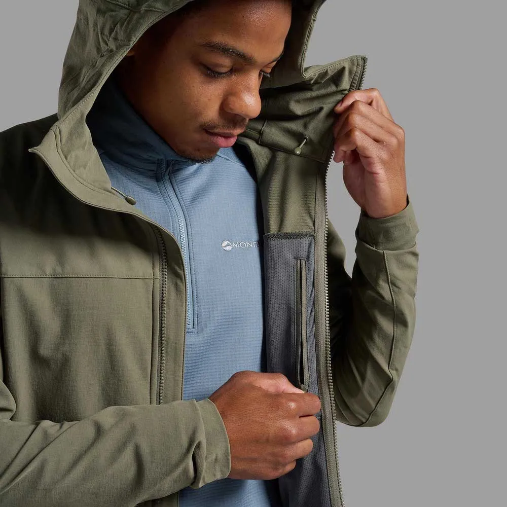 A jaqueta softshell com capuz Montane Tenacity é uma jaqueta adaptável, altamente respirável e resistente ao vento, projetada para desempenho e gerenciamento de umidade.