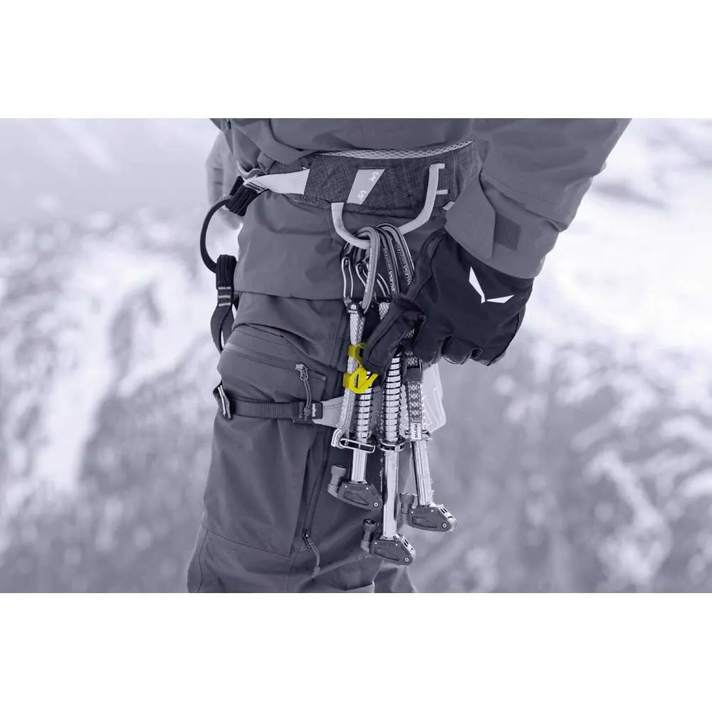 - Cabeça compacta e mosquetão integrado se conecta diretamente ao arnês para um rack simplificado (sem necessidade de cortadores de parafuso de gelo)