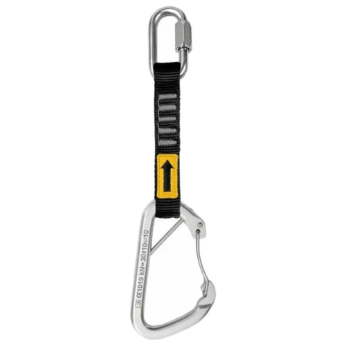- Resistência: fita: 22 kN, mosquetão: 30-10-10 kN