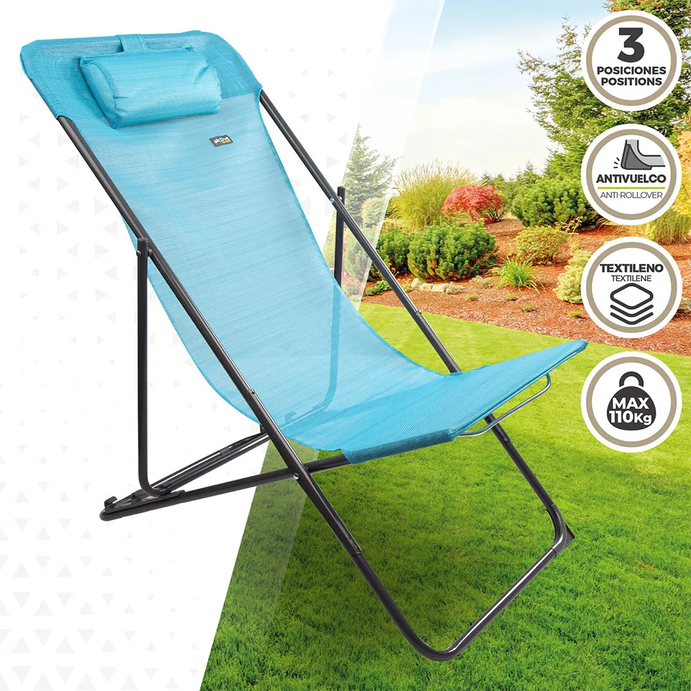 Flerpositions hopfällbar trädgårdshängmatta blå med kudde Aktive.