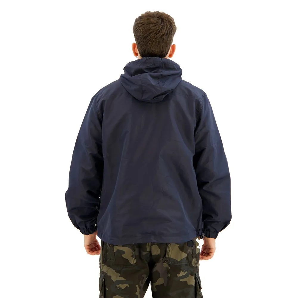 Vind- och vattenavvisande, meshfoder, huva med dragsko, stor bröstficka med dragkedja, 2 sidofickor med dragkedja, manschetter, ventilationshål i sidled, alla dragkedjor med dragkedja.