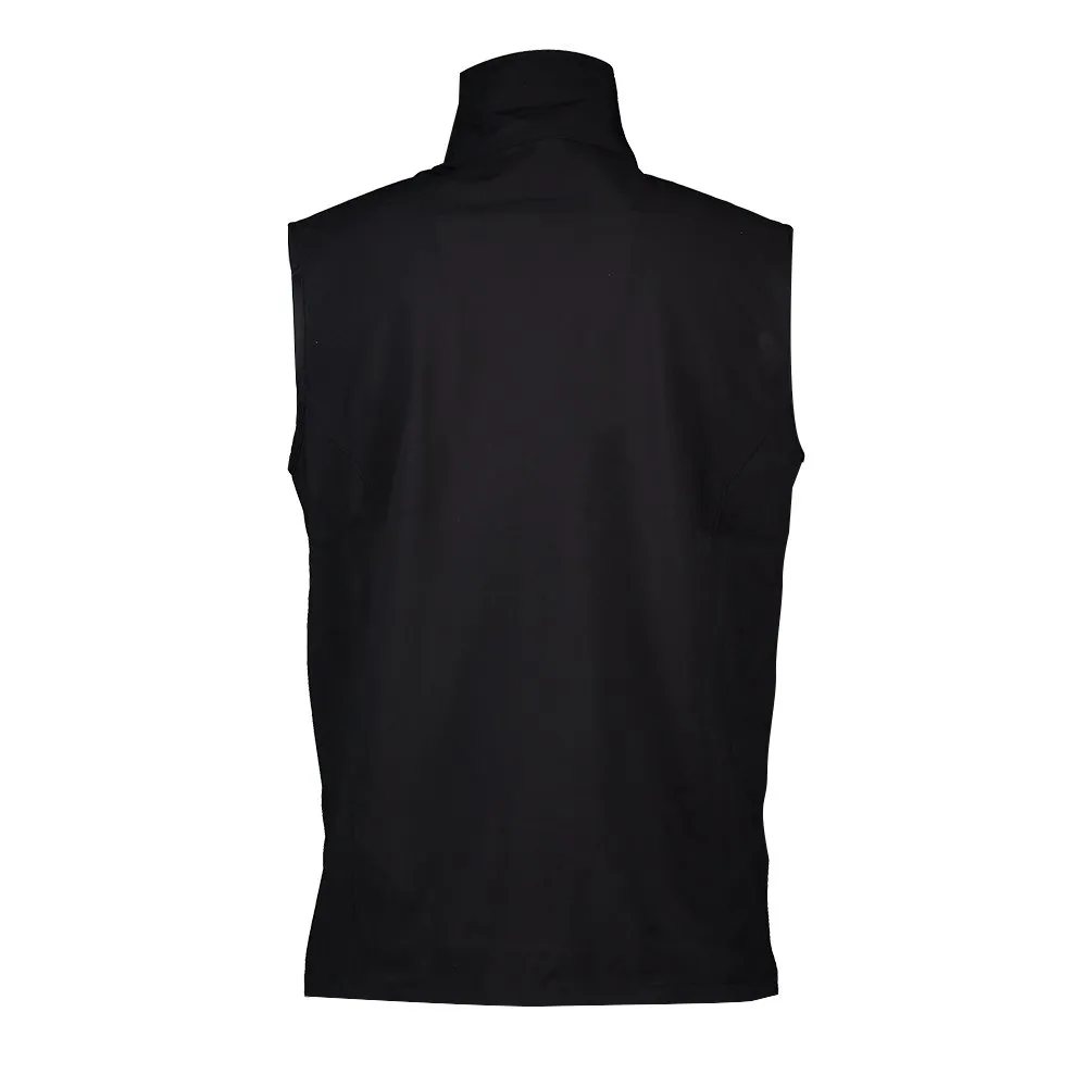 En dubbelväv, lätt och vattenbeständig softshellväst med stretchtyg.