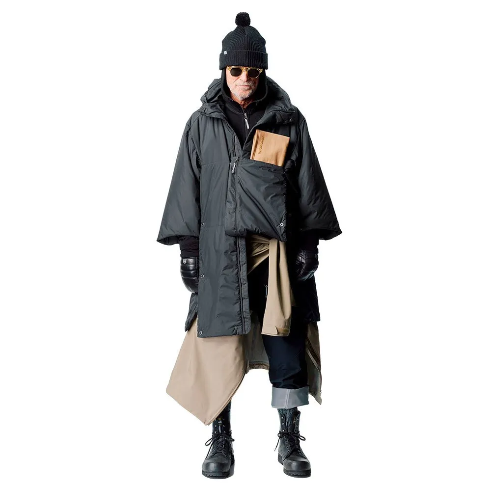 Den höga kragen med en packbar huva ger skydd mot kalla vindar, medan 3/4 ärmlängd och en avslappnad passform fungerar bekvämt över din vanliga vinterrock eller tröja.