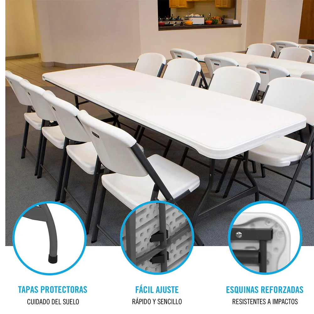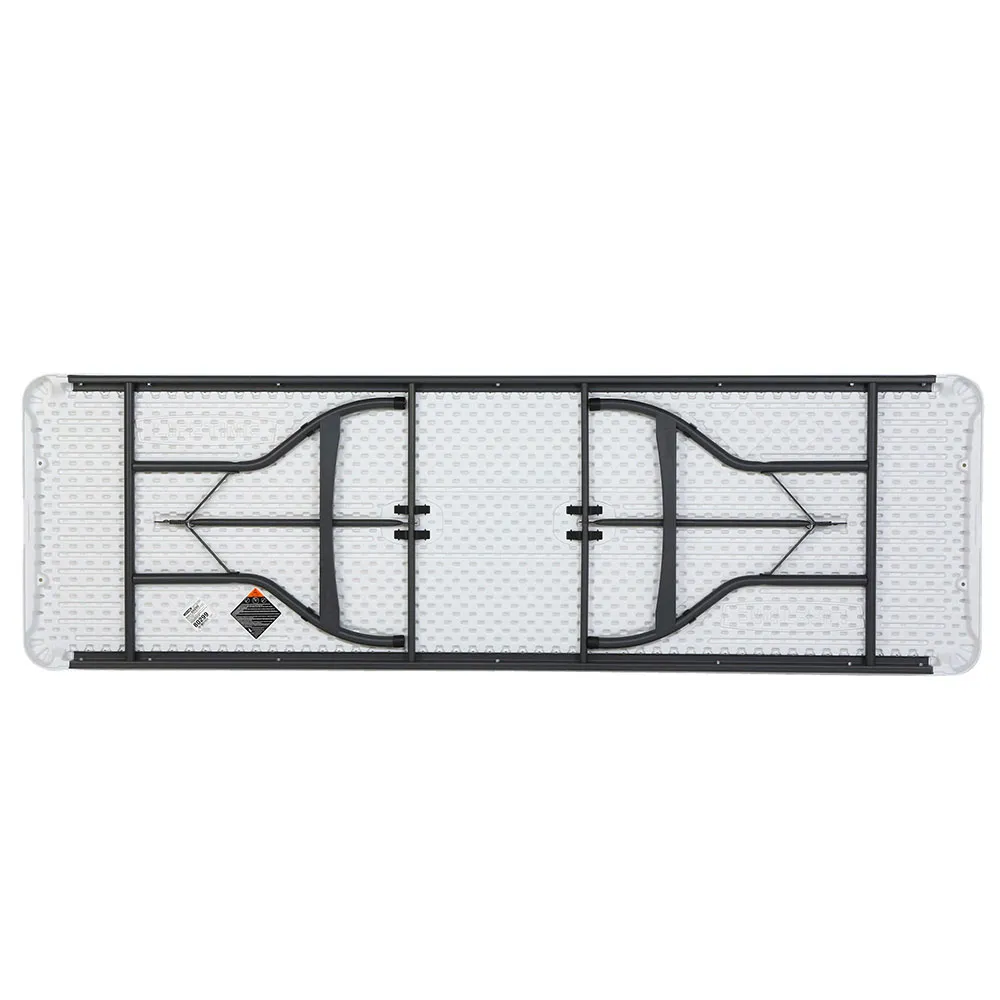 Benen fälls ihop och döljs under bordsskivan, och det har säkerhetslås och en nästlad design för enkel stapling med andra bord.