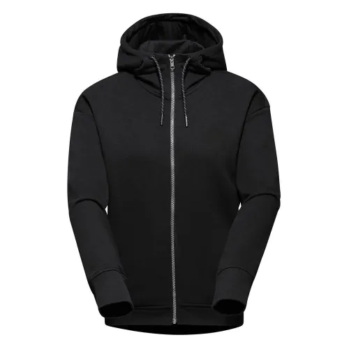 Denna hoodie för damer har en metallfrontblixtlås, tumhål och en mini-blixtlås förvaring inuti en av de stora fickorna.