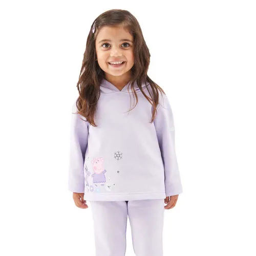 Tillverkad av supermjukt borstad polyestertyg med en ombonad huva och ett Peppa-tryck på framsidan.