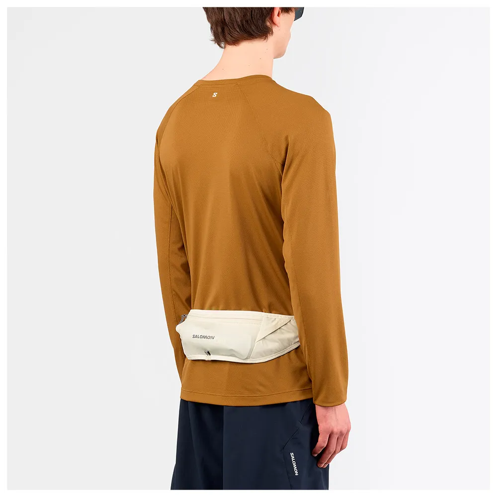 Upplev ultimat frihet på stigen eller under resor med SALOMON Pulse Hydration midjeväska. Detta mjuka, minimalistiska bälte är nu lättare och mer hållbart, och erbjuder en åtsittande, studsfri passform tack vare dess 4-vägs stretchtyg och spännfria tubformade design. Förvara dina nödvändigheter smart i hemliga fickor och bär två 500 ml flaskor i horisontella stretchfickor. Mångsidiga diagonala remmar håller en jacka eller stavar, så att du kan fokusera på ditt äventyr, inte din utrustning. Idealisk för allt från stadslöpning till tekniska stigar