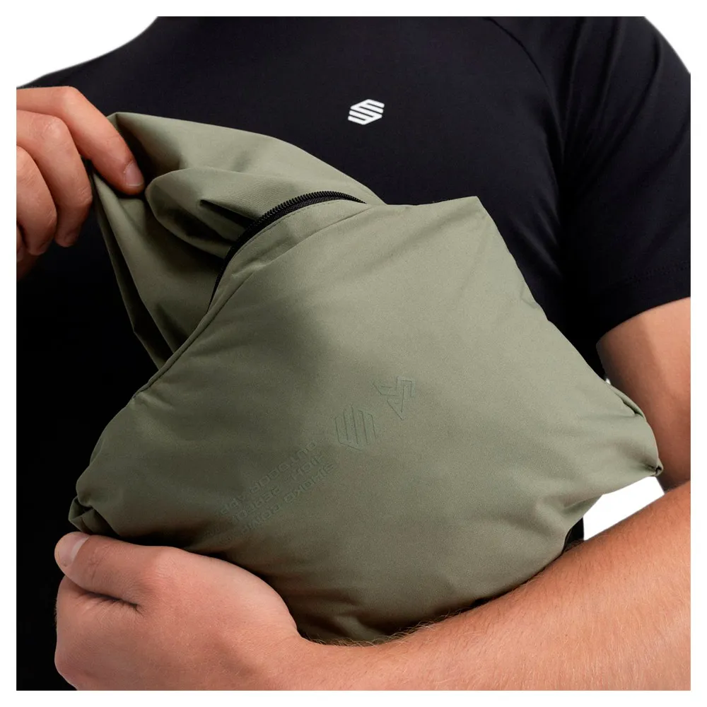 - Kompakt och portabel: den kan enkelt vikas ihop och förvaras i en självförvaringsbröstficka