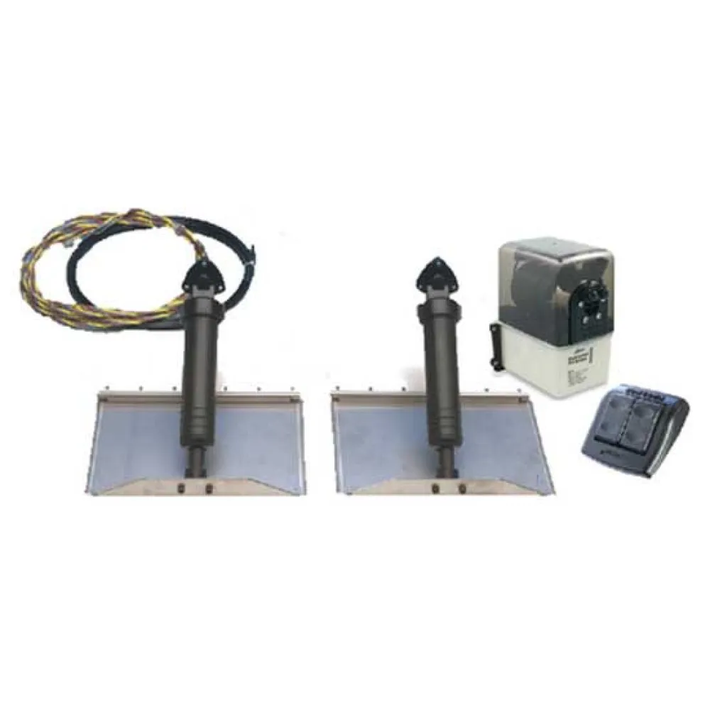 Standard kit: indeholder to rustfrit stål trimflapper, to aktuatorer, en hydraulisk kraftenhed, alle nødvendige ledninger, slanger, hardware og installationsanvisninger. Controls valgfri til standard kit Deluxe kit: samme som standard kit men indeholder ES2000 kontrol
