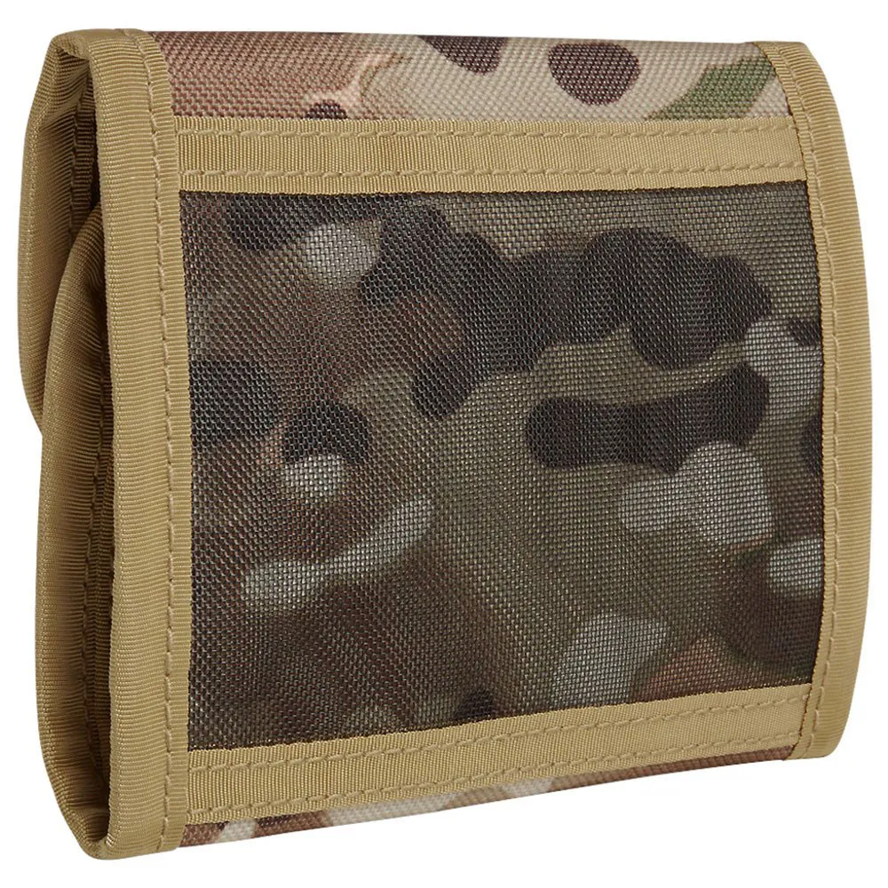 Robust 600DEN polyester materiale, indvendigt møntrum med lynlås, baglomme til dokumenter, 3 kortspor, 2 ekstra rum, 2 pengeseddelommer, 3 elastiske bånd, D-ring.