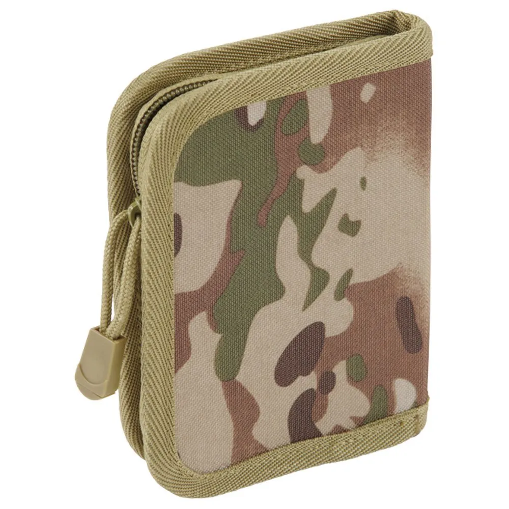 Robust 600DEN polyester materiale, lynlås i høj kvalitet med lynlås, stort møntrum, mange kortspor, foldbart gennemsigtigt plastvindue til pas, 2 pengesedler.