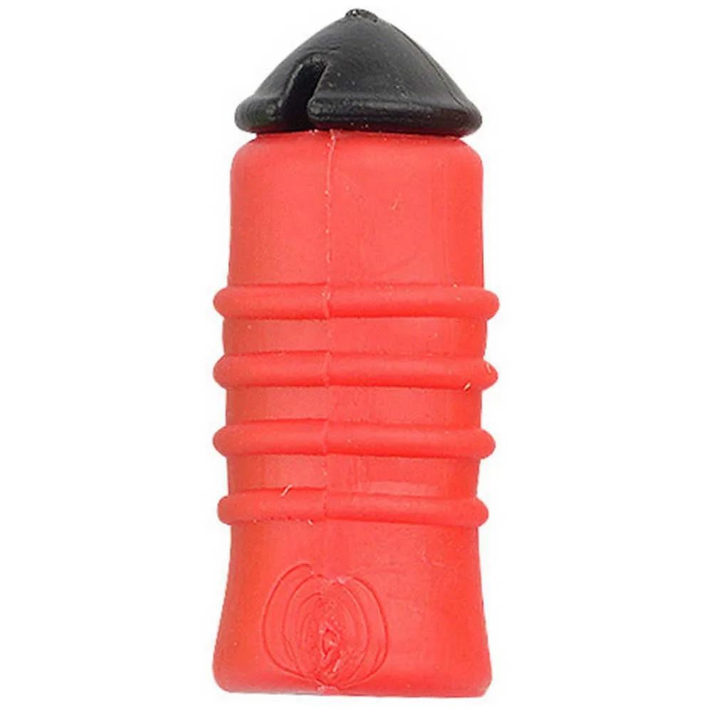 Gummihætten forhindrer at beskadige elastikken, reducerer støjen ved at ramme stangen og den flade underside sidder fladt mod spidsen.