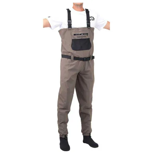 Disse brystvinger er lavet i et 3 lags åndbart materiale og er ultra behagelige til regelmæssige wading sessioner. Bygningen er blevet raffineret og forbedret over flere tests for optimal holdbarhed og tilpasningsevne til forskellige kropsformer. Den højkvalitets tilpasningsbare neopren sok kan prale af en integreret sål og de termisk forseglede sømme løber lodret langs hælen, så det lettere at sætte wading støvler på, samtidig med at man garanterer en stærk sammenføjning. Vaderne kan monteres ved hjælp af bæltet rundt om taljen såvel som klips skulderstropperne. Frontlommen har en vandtæt YKK lynlås og en ekstra ydre meshlomme.