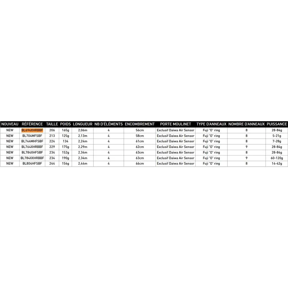 Tekniske specifikationer Daiwa Ballistic