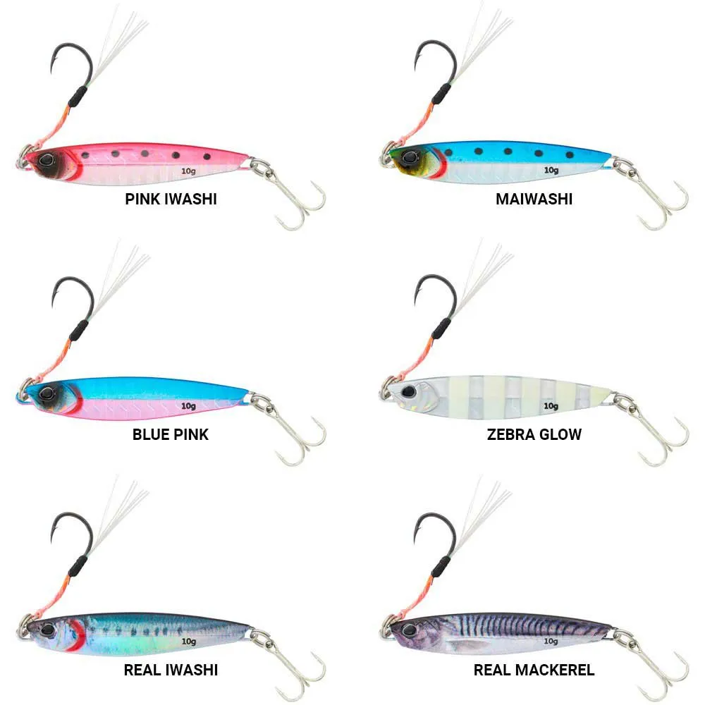 DAIWA Samuraï Jig 7g er en alsidig og effektiv fiskelokke designet til at målrette en række saltvandsfiskarter. Denne særlige model fås i en række levende og iøjnefaldende farver, herunder Blue Pink, Mackerel, Maiwashi, Pink Iwashi, Real Iwashi og Zebra Glow.