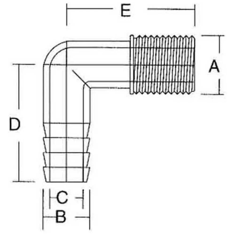 Denne komponent fungerer som en af de mest pålidelige adaptere inden for marine VVS, der forbinder gevindrørsystemer med fleksible slangelinjer i en ret vinkel.