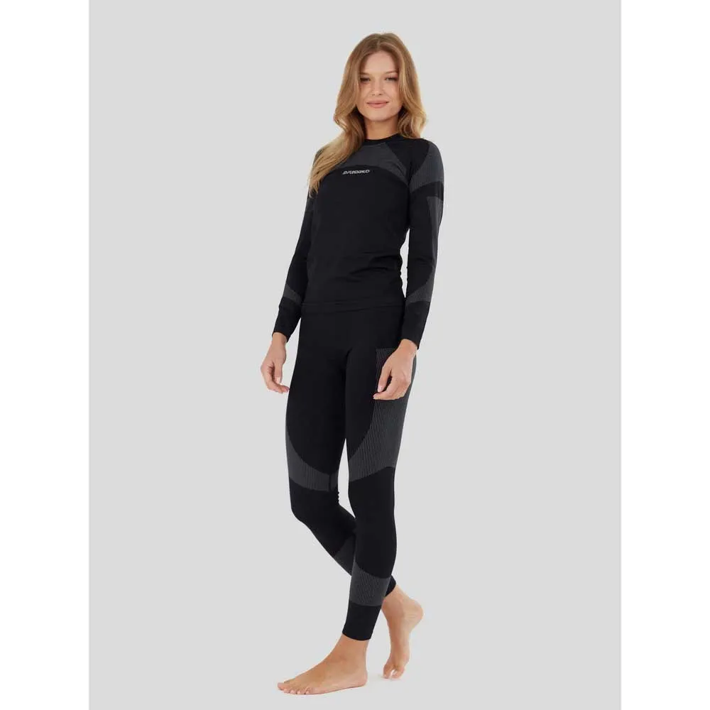 Fundango Seamless Baselayer Sæt er et undertøjssæt til kvinder, der sikrer komfort og funktionalitet på aktive dage med sit sømløse, tekniske design. Den innovative brug af materialer og det kropsnære snit sikrer, at du forbliver varm og tør, samtidig med at du bevarer maksimal bevægelsesfrihed.