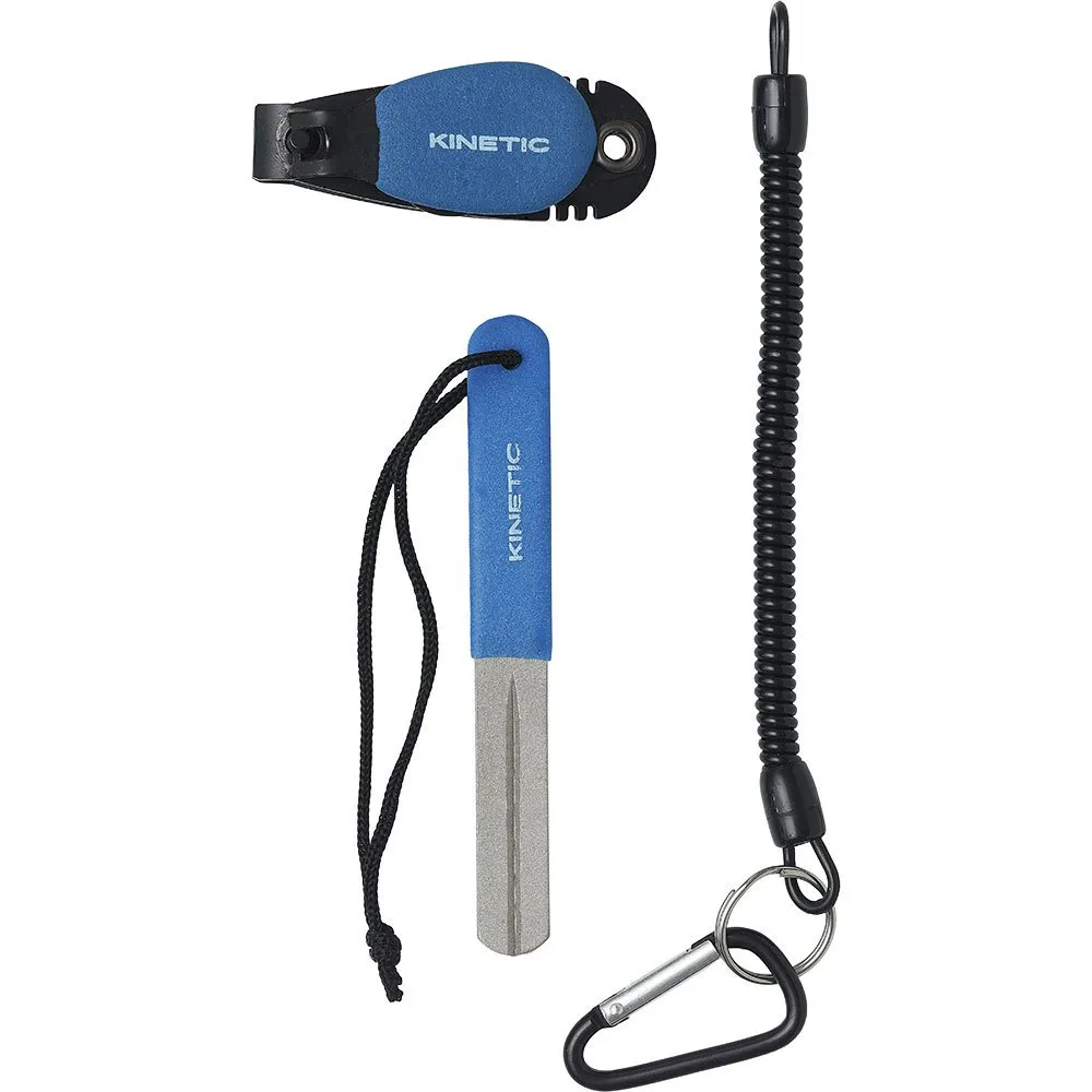 En multiklipper og en krogsliber – du behøver ikke mere! Multiklipperen har 7 funktioner, herunder klipper, kniv, fil, disgorger, syl, stemmeværktøj og line pick. Leveres med halssnor for hurtig og nem adgang. Diamantkrogsliberen skærper dine punkter til knivskarphed. Dette er det perfekte kompakte værktøjssæt til alle former for ferskvandsfiskeri.