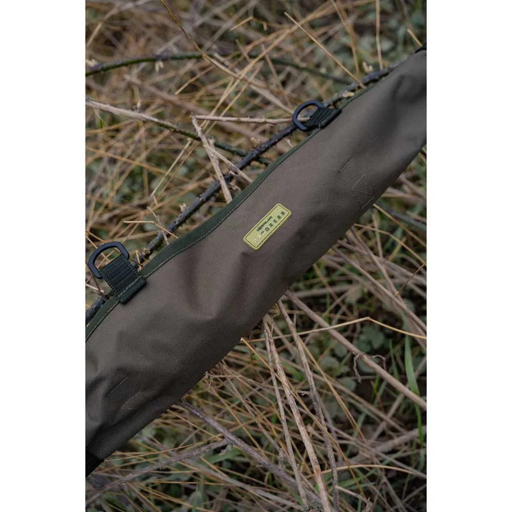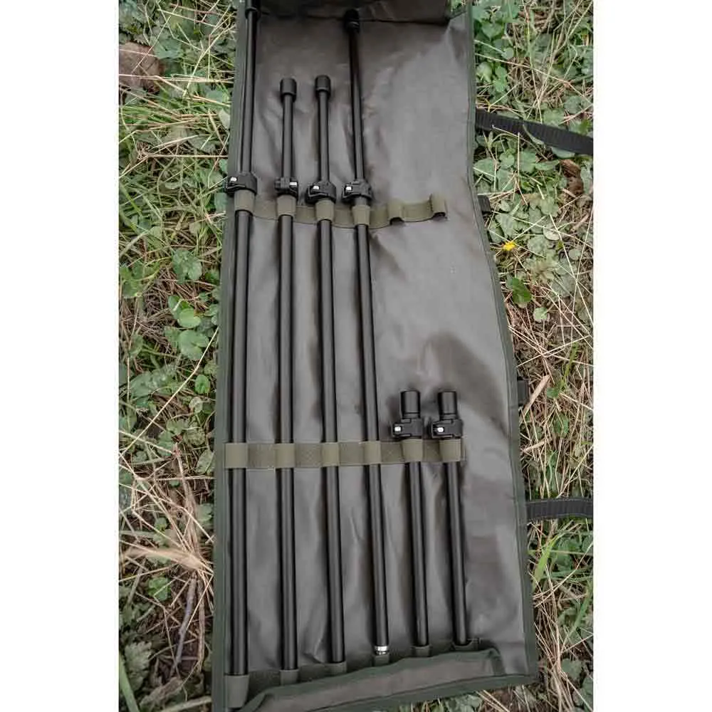 Dette kompakte design gør det muligt for dig at bære op til seks banksticks med alarmer eller rod rests nemt. Hver bankstick holdes fast af elastiske løkker og holdes lukket i en pæn rulle af to webbingstropper. Komplet med to D-ringe til nem transport på Korum-bagage. Lavet af et slidstærkt 600D PVC-materiale, der er nemt at tørre af.