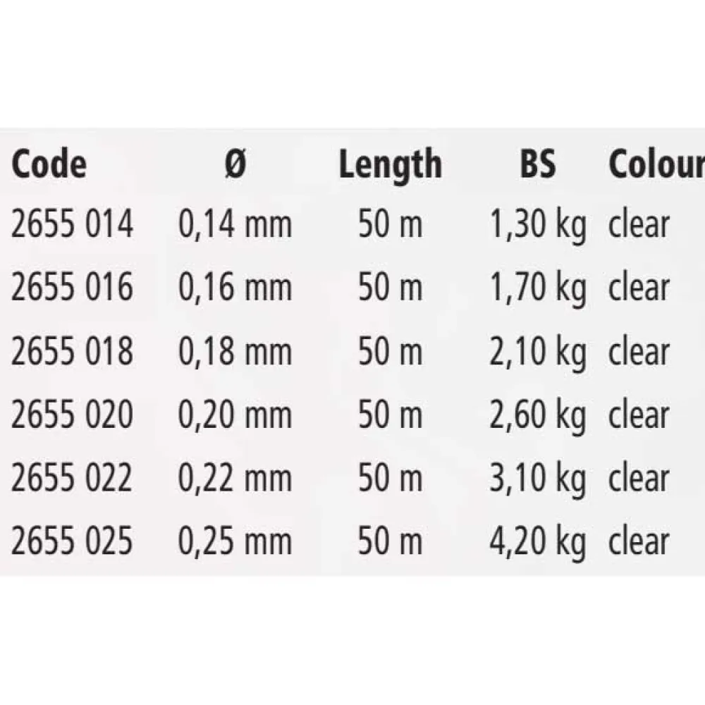Se størrelsesvælgeren for den korrekte størrelse. Dominer undervandsverdenen og overlist selv de mest forsigtige fisk med MAGIC TROUT Fluorocarbon 50m fiskeline.