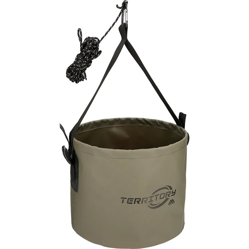 En ny sammenklappelig spand, der kan bruges både som en beholder til forberedelse af agn og til at samle vand til en fanget fisk. Den bredere konstruktion giver stabilitet og forhindrer, at den fyldte spand vælter. Udstyret med en hage og en snor for at lette vandsamlingen.