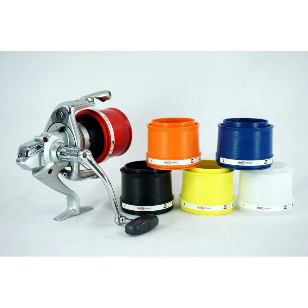 Tilpas din rulle: Tilgængelig en bred vifte af farver og tilbehør til dine Surfcasting & Carpfishing hjul.