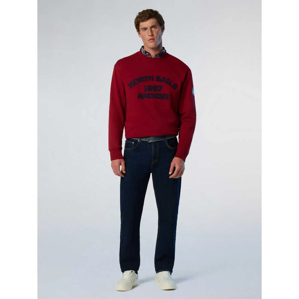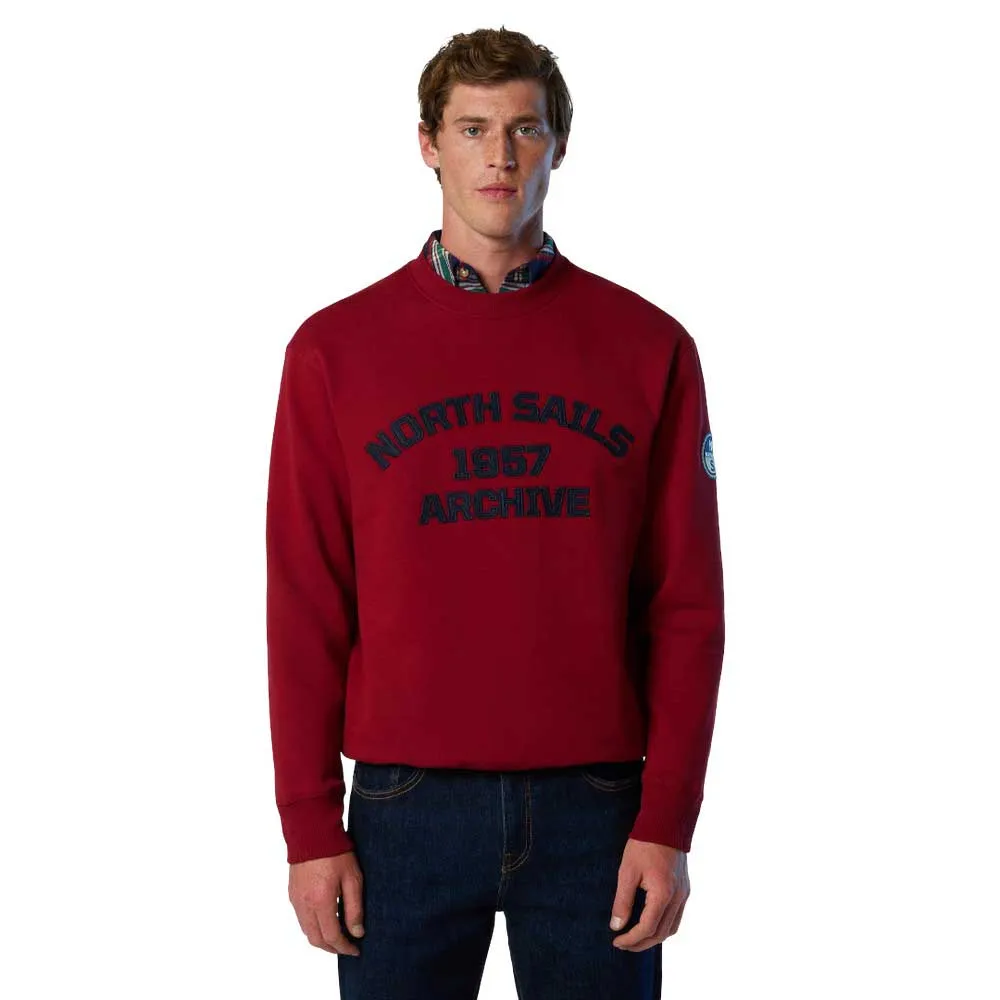 Retro fornemmelse med et lettere aftryk. Denne børstede fleece sweatshirt med filt bogstaver er lavet af økologisk bomuld, dyrket med mindre vand og genererer færre emissioner end almindelige fibre. En metaløje henviser til vores sejlerarv, forstærket med patches og labels hentet fra North Sails arkiverne.
