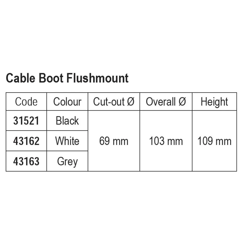 Understøtter: En bred vifte af kabelstørrelser og -typer, hvilket sikrer kompatibilitet med forskellige applikationer. Fra små ledninger til større strømkabler giver NUOVA RADE Kabelgennemføring Flushmount en sikker og beskyttende løsning. Dens alsidige design gør den velegnet til brug med runde, flade og endda multilederkabler.