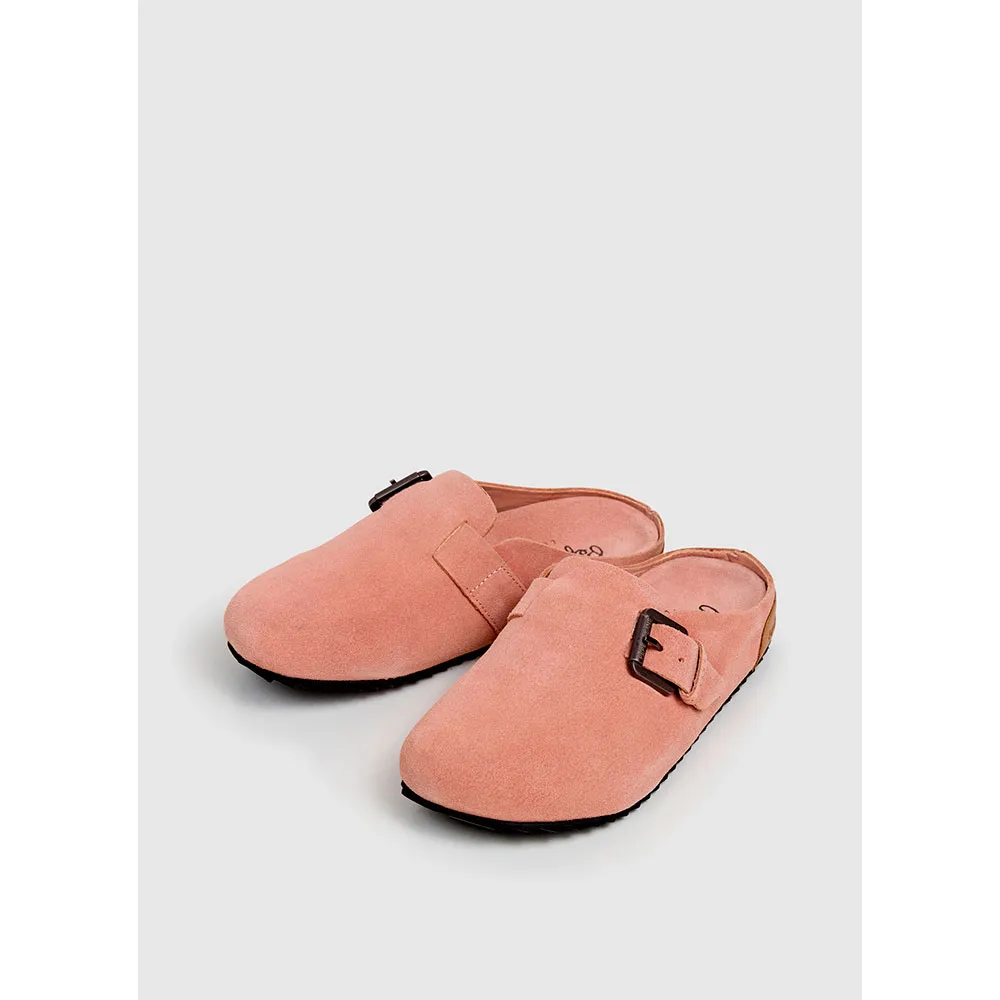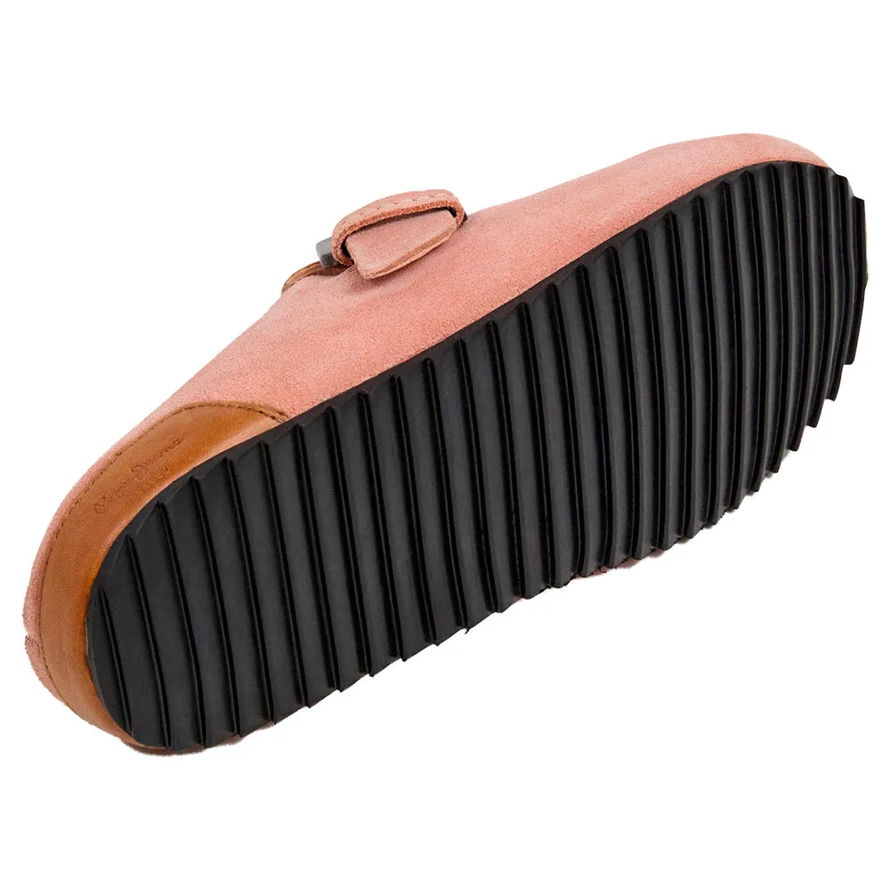 Corby Clog C sandal fremstillet i koskind ruskind med rem og metallisk spænde, anatomisk fodseng, klassisk logo på indersålen og takket TR ydersål.