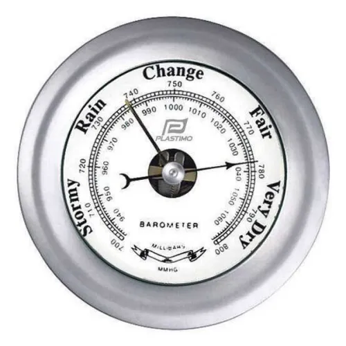 Navigér skiftende vejrforhold med selvtillid ved hjælp af PLASTIMO Krom Barometer, et præcisionsinstrument designet til nøjagtige barometertryk aflæsninger. Dette elegante og pålidelige barometer er perfekt til bådejere, piloter, vejenthusiaster eller alle, der søger en stilfuld og funktionel måde at overvåge atmosfæriske tryktendenser i deres hjem eller kontor. Dens klassiske kromfinish tilføjer et strejf af sofistikering til ethvert miljø, samtidig med at den giver klare og letlæselige målinger.