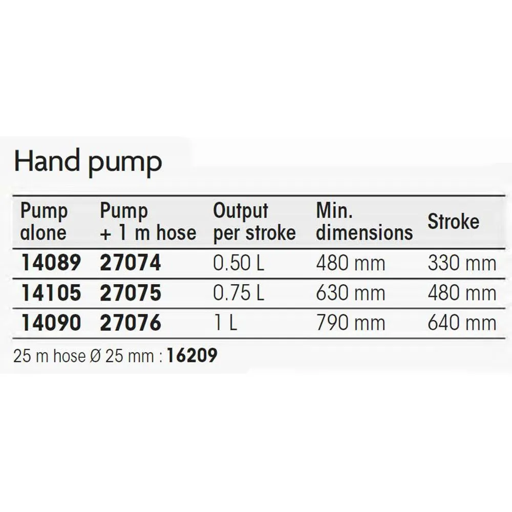 Tekniske specifikationer Plastimo Håndpumpe