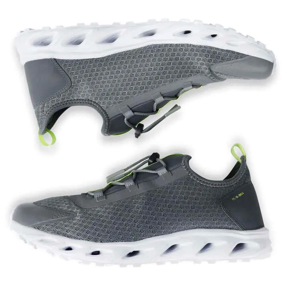 Sig farvel til at glide og skride, selv på de mest udfordrende våde overflader. Fundamentet for T10-træneren er dens enestående skridsikre gummisål, omhyggeligt designet til at give et stabilt greb og stabilitet, når du har mest brug for det. Denne specielt formulerede, ikke-mærkende sål beskytter også din båds dæk mod skrammer og mærker og bevarer dets uberørte tilstand. Det integrerede dræningssystem leder aktivt vand væk under foden, hvilket sikrer, at din forbindelse til overfladen forbliver sikker og responsiv.