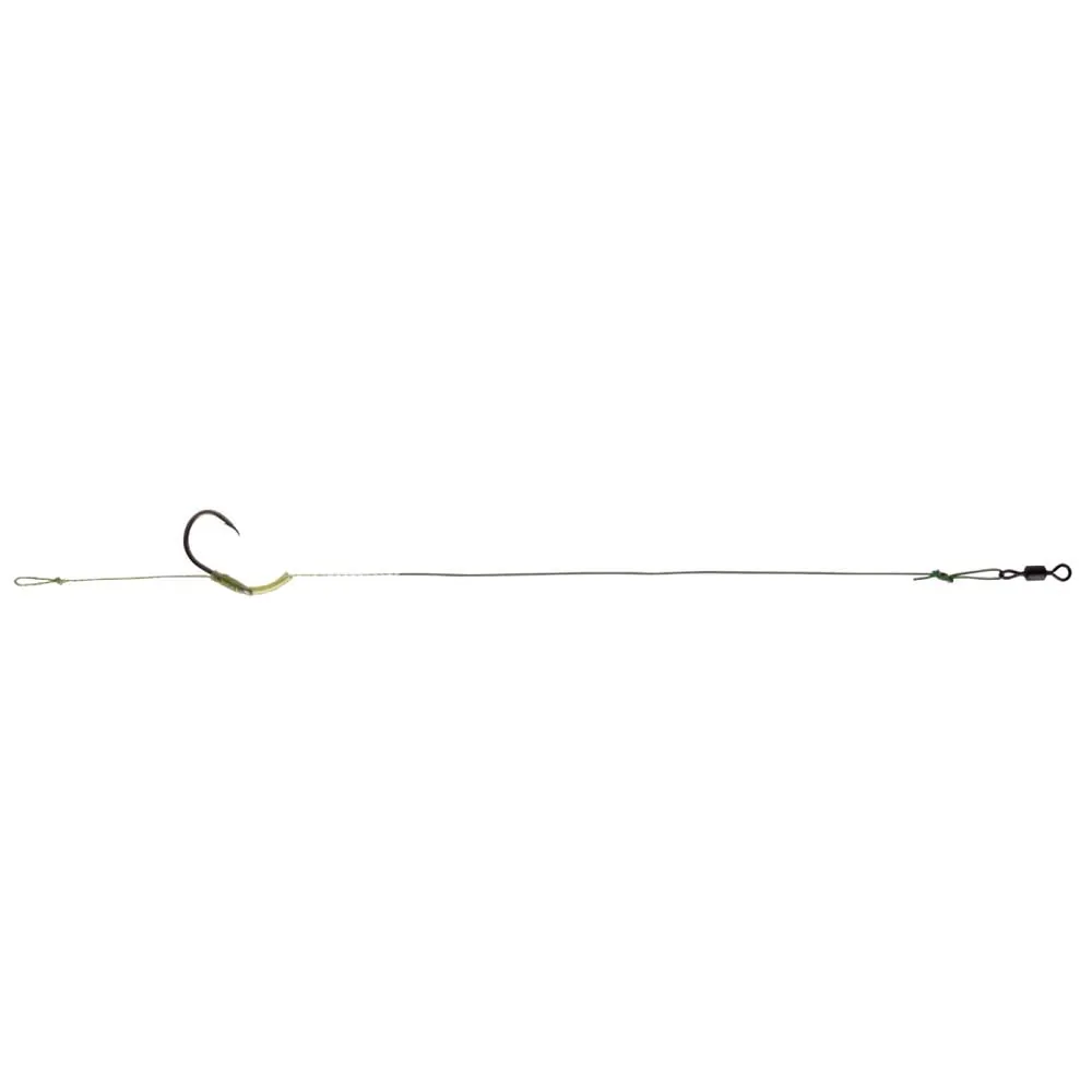 Halvstiv montering til alle præsentationer. Den kombinerede fletning, der anvendes, har en stiv belægning langs dens længde for at undgå risikoen for indvinding og ender med en fleksibel del, som giver mere frihed til esche. Bunden af ​​linjen er forbundet med krogen ELITECH W1, som har en bred åbning og et meget skarpt punkt. En lille buet kappe anbragt på øjenet og en del af stilken optimerer selvkørslen.