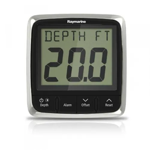 Dybderammen Raymarine i50 giver oplysninger om den aktuelle dybde både i meter og fødder eller famler. Registrerer også mindste og maksimale dybder, der opstår under den tid, hvor enheden er tilsluttet.