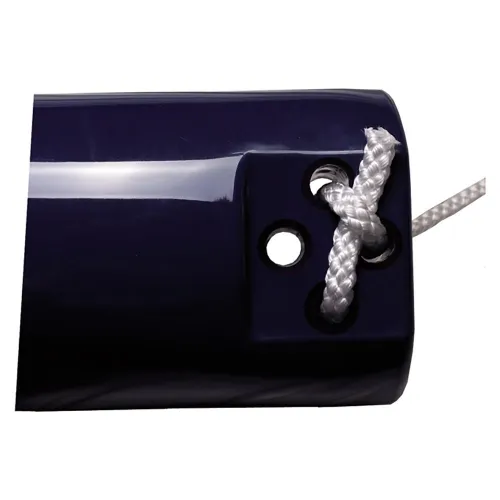 Fenderen har et sæt huller i hver ende af fenderen, der gør, at fenderrebet kan fastgøres fast uden behov for en rebsplitning eller -knude.