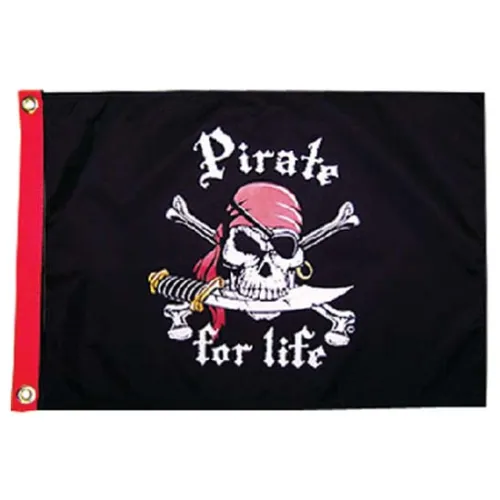 Erklær din livslange troskab til piratkoden med TAYLOR Pirate For Life Flag! Dette holdbare og levende flag er det perfekte nautiske tilbehør til enhver bådejer, der omfavner eventyrlyst og frihed på det åbne hav. Hiv det stolt op i mastetoppen, agterstavnen eller rælingen, og lad alle vide, at du lever efter piraternes trosbekendelse.