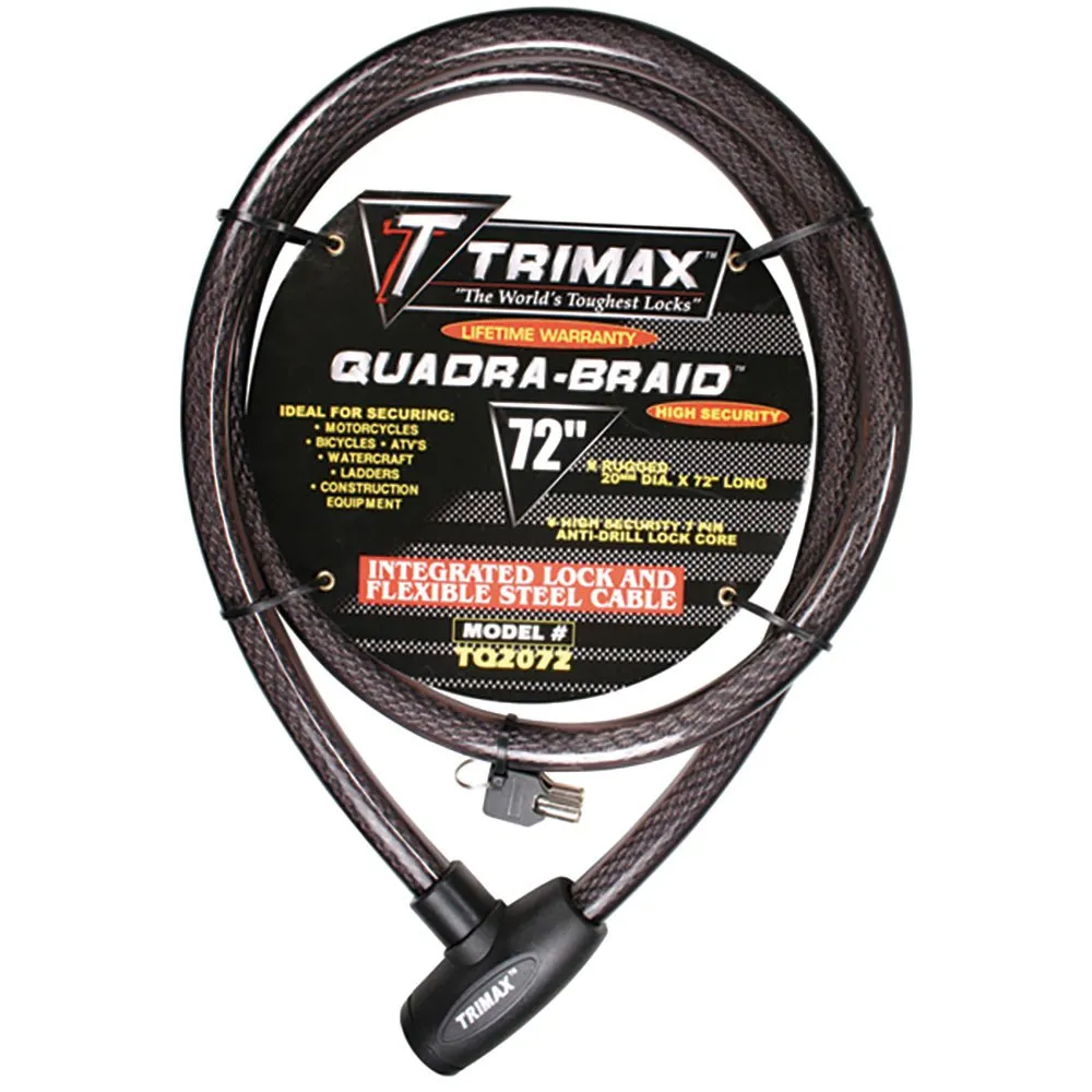 TRIMAX LOCKS Quadra-Braid lås skiller sig ud fra konkurrenterne med sit innovative og holdbare design. Quadra-Braid kablet er konstrueret af fire sammenvævede stålkabler, der skaber en formidabel barriere mod skære- og saveangreb. I modsætning til traditionelle enkeltstrengskabler fordeler Quadra-Braid designet trykket over flere strenge, hvilket gør det betydeligt sværere at kompromittere. Den hærdede stål bøjle forbedrer yderligere sikkerheden og modstår boltesakse og andre almindelige tyveriværktøjer. Denne kombination af et robust kabel og en hærdet bøjle giver enestående beskyttelse til din båd, påhængsmotor, trailer og andet værdifuldt udstyr.