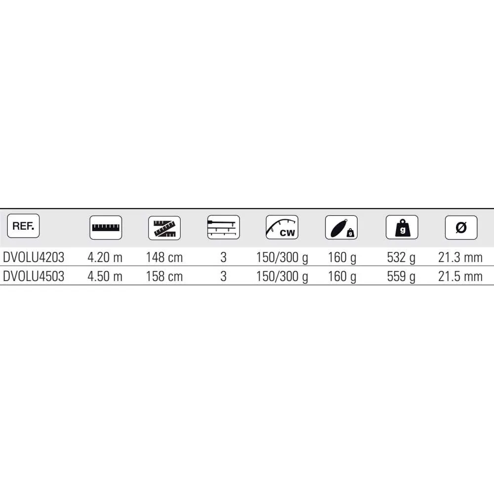 - Øjer: Højkvalitets SIC LC-øjer (på 4.20m modellen) og KW-øjer (på 4.50m modellen) for jævn lineføring, reduceret friktion og forebyggelse af sammenfiltring, hvilket gør dem ideelle til både monofilament- og fletliner