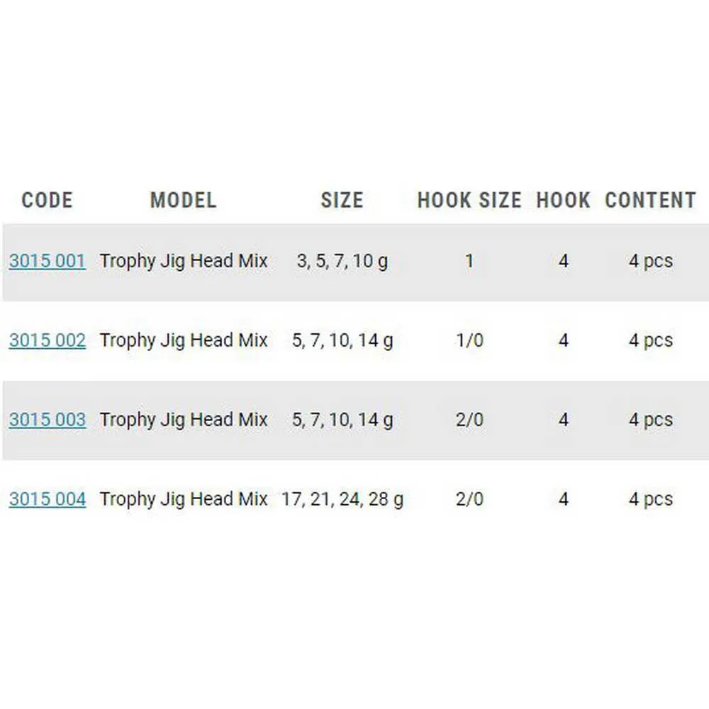 Denne jig head er tilgængelig i en række størrelser og vægte, så du kan skræddersy din præsentation til de specifikke forhold og målarten, du fisker efter. Uanset om du målretter mod bas, gedde eller andre populære fiskearter, tilbyder Trophy Mix Jig Head den alsidighed, du har brug for for at opnå succes.