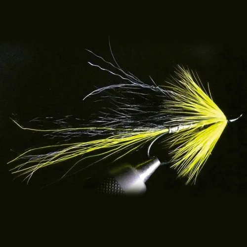 Doch die Vorteile hören hier nicht auf. Diese Fliege wird aus hochwertigen Materialien hergestellt, die Langlebigkeit und Beständigkeit gewährleisten. Jedes Element, von den sorgfältig gebundenen Federn bis zu den robusten Haken, wurde aufgrund seiner Fähigkeit ausgewählt, den Strapazen des Kampfes mit starken Lachsen unter schwierigen Bedingungen standzuhalten.
