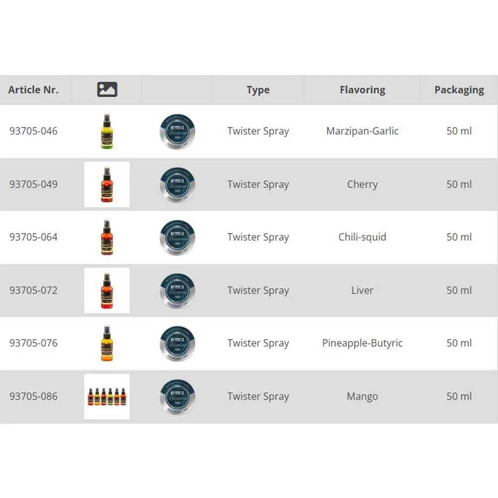 Die Frage ist nur, was sie genau wissen. Twister Sprays haben einen sehr starken Geruch, einen unverwechselbaren Geschmack und eine unglaublich starke Färbekraft, so dass sie tatsächlich alle Sinne der Karpfen beeinflussen! Das können wirklich nur die besten Aromen behaupten.