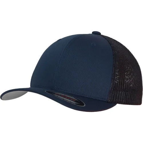 Klassische Front, gebogenem Schirm, Rückseite aus tonalem Trucker Mesh, Flexfit-Technologie, angenehmer Tragekomfort.