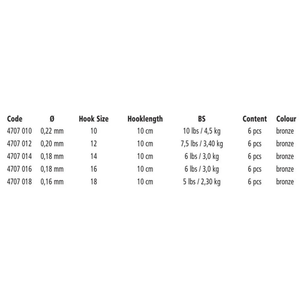 Heben Sie Ihr Method Feeder Angeln auf ein professionelles Niveau mit den Browning Feeder Method Push Stop Vorfächern. Fachmännisch entwickelt für Angler, die Effizienz, Zuverlässigkeit und perfekte Präsentation verlangen, sind diese Hakenlängen die ultimative Lösung zur Maximierung Ihrer Fangquote. Verabschieden Sie sich vom zeitraubenden Binden eigener Montagen und begrüßen Sie sofortige, konstante Leistung direkt aus der Packung. Egal, ob Sie ein Wettkampfangler sind oder eine entspannte Angelsession genießen, diese Vorfächer bieten den entscheidenden Vorteil, den Sie benötigen.